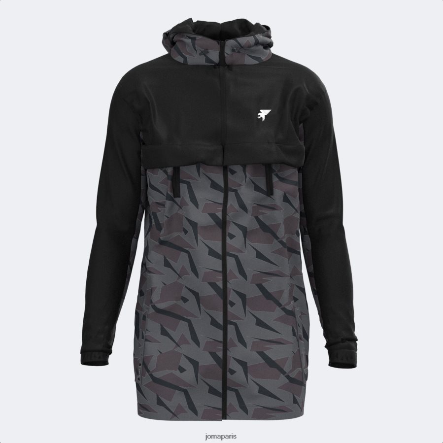 la longueur des hommes pour l’extérieur. Il incorpore un capot avec un bouchon et un cordon de cordon sur les côtés pour un meilleur ajustement et pour empêcher le froid de filtrer à l’intérieur. Ce manteau avec fixation à fermeture éclair comprend quatre poches avant, également avec fixation de zip. Les poches inférieures ont un zip interne. Comprend des poignets élastiques et l’ourlet avec cordon et deux bouchons internes pour obtenir une isolation complète. Il se distingue par sa conception de sublimation en noir et différentes nuances de gris.