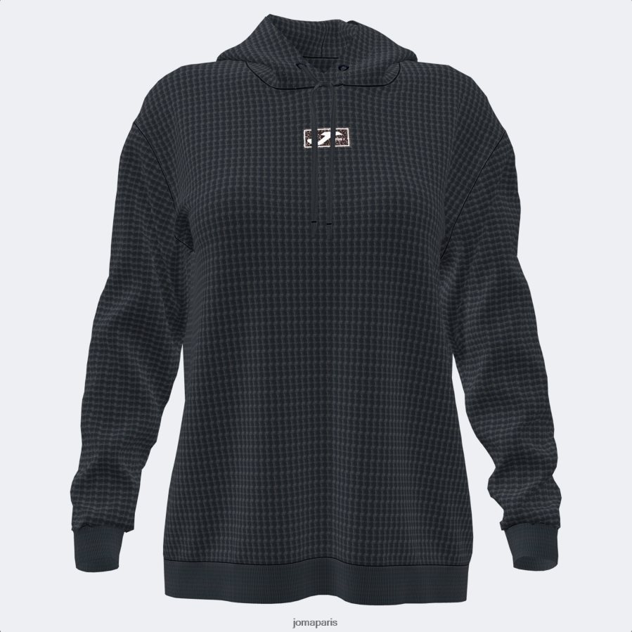 Sweat-shirt décontracté de la femme. Comprend une capuche réglable à cordon, est montée sur l’ourlet et les poignets, et a laissé tomber les épaules. Il est fait avec du coton et un tissu thermique qui maintient la température corporelle de l’athlète tout en offrant de la chaleur et du confort.